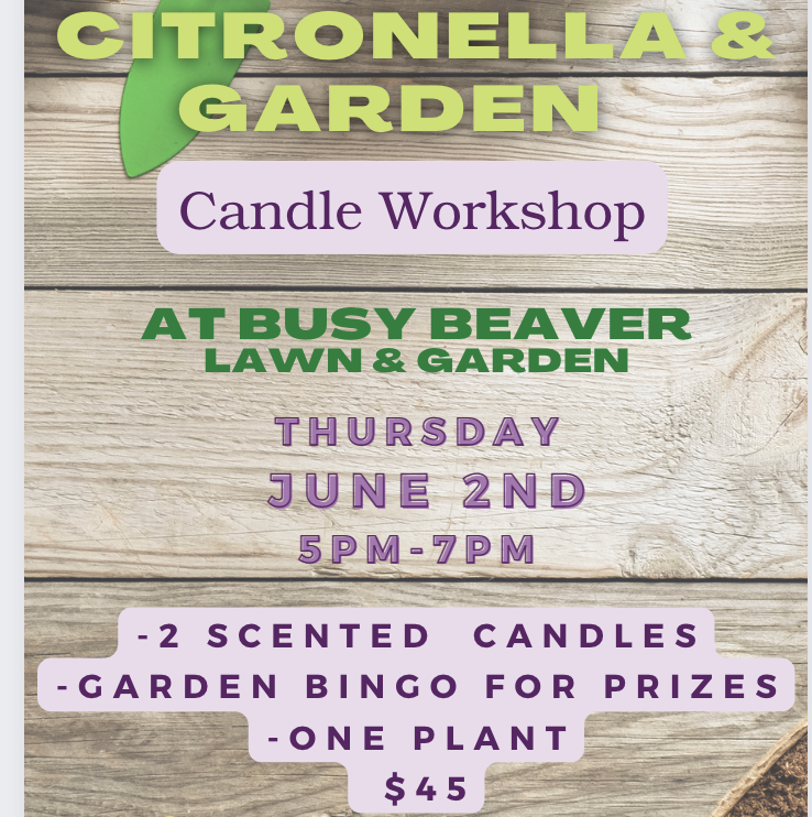 Grab your friends and family and book our peaceful garden candle workshop at Busy Beaver Lawn & Garden Inc.